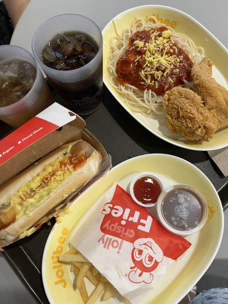 졸리비(Jollibee) 스테이션2 화이트비치 바로 앞에 있는 졸리비 여행 첫날 방문했어요 ㅎㅎ 말로만 듣던 ...
