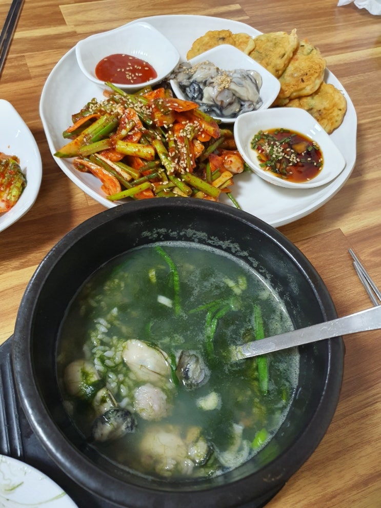매번 갈때마다 용궁문어굴보쌈 먹었었는데 오늘은 매생이 굴국밥정식먹음 굴천지 정식 👍🏻 짝꿍은 소...