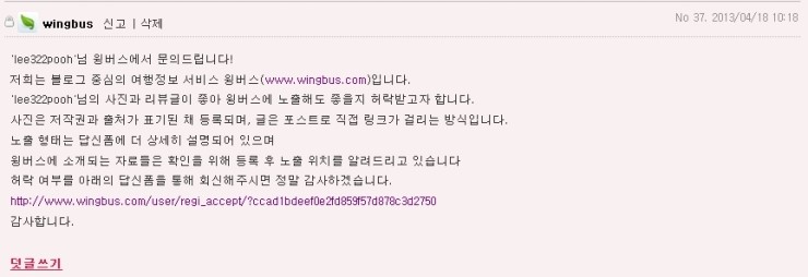 얼마전 안부글에 윙버스에서 남긴 글을 봤다. 요즘 블로그 활동을 잘 안했는데, 나에게 이런 기회가 오다니...