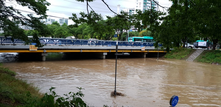 빗줄기가 살짝 가늘어져서 산책을 나왔다가 한강인지 안산천인지 모를 상황을 보게 됨 다들 피해 없으셨으...
