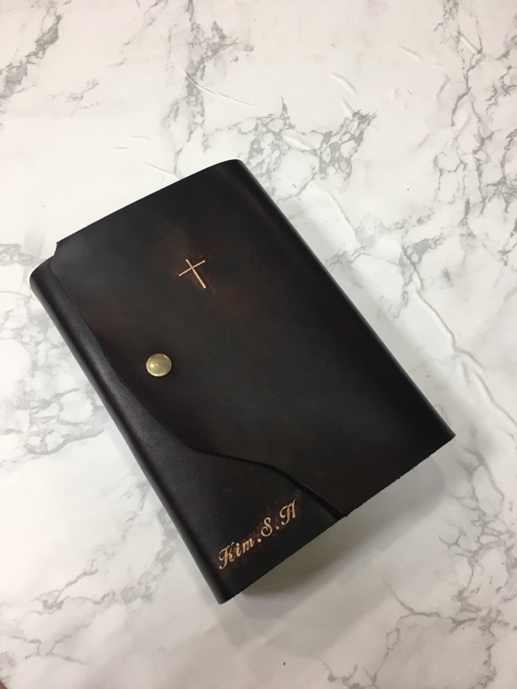홍대 9번출구[가죽공방 사포걸]통가죽 십자가 각인 성경책커버 리폼
