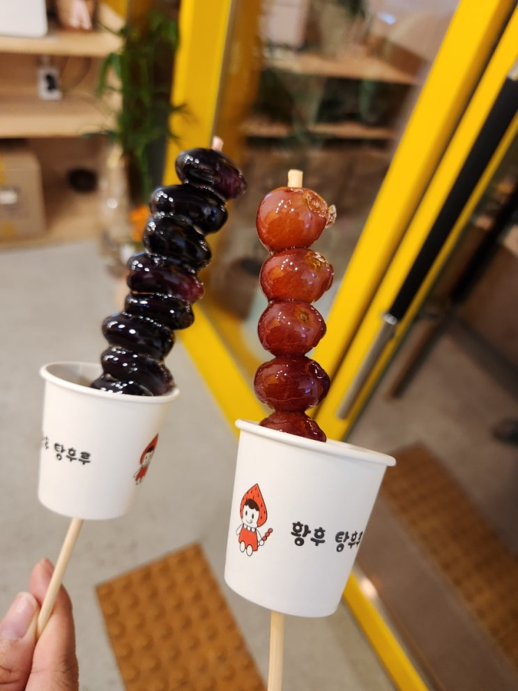황후탕후루에 다녀왔어요 늦게 갔더니 품절된 게 꽤 있었어요 크림슨 포도와 블랙 사파이어를 주문했습니다...