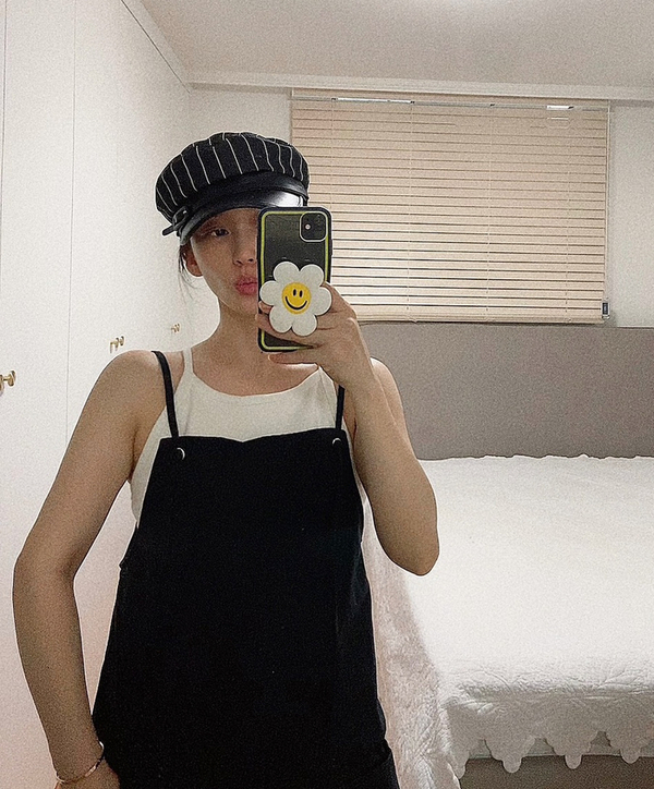 선크림 바르고 모자 쓰면 준비 끝! 핏 예쁜 민소매 탑(캡내장)에 오버롤즈가 더해진 이 룩이 마음에 들어서...