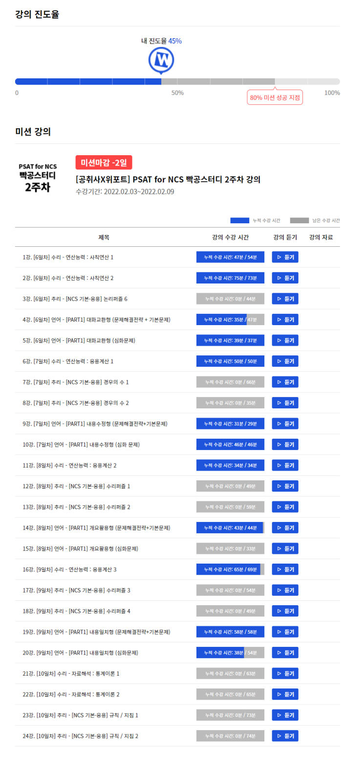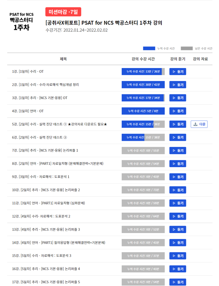 #NCS인강 #NCS기본서 #빡공스터디17기 #위포트 #NCS공부법 #공기업NCS 각 일자별로 강의가 정...