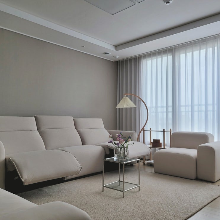 한샘 플로에 패브릭 리클라이너소파로 거실인테리어 완성