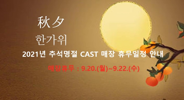2021년 추석명절 CAST 매장 휴무일정 안내 9월20일(월)부터 22일(수)까지 3일간만 휴무에 들어...