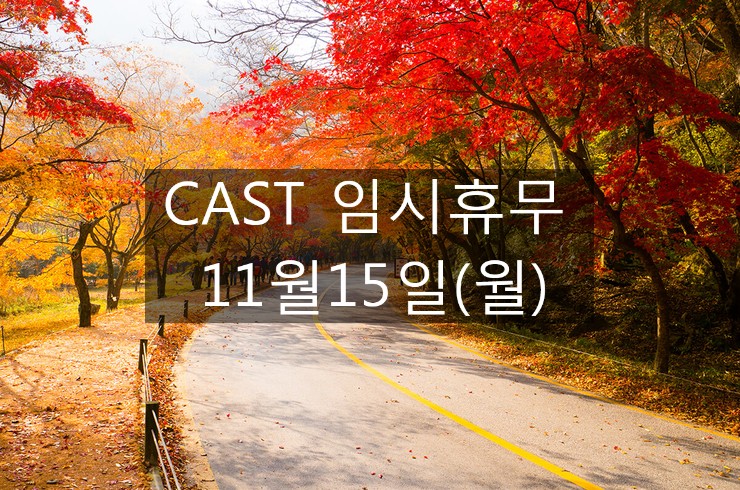 CAST 매장 임시휴무 11월 15일 월요일 금일 개인사정으로 인하여 CAST 매장 임시휴무에 들...