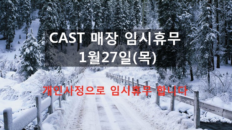 CAST 매장 임시휴무 안내 2022년1월27일 목요일 개인사정으로 금일 휴업합니다. 즐거운 하루 되세요.^^...