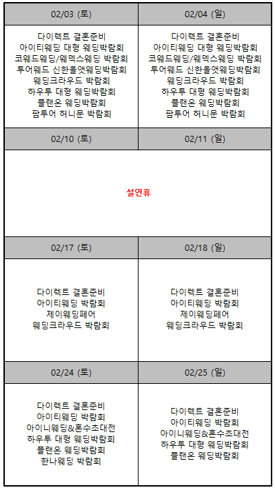 2월 웨딩박람회 일정 총정리