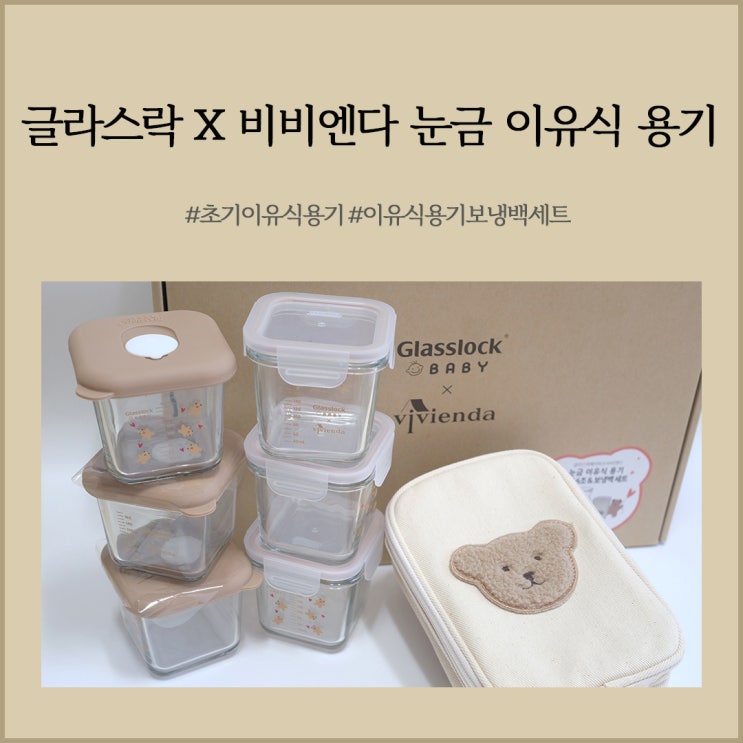 아기 귀여운 이유식 용기: 글라스락X비비엔다 눈금 이유식 용기 보냉백 세트