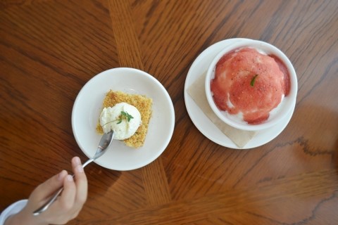 2019년 윤이의 일곱살 여름. 종종 찾던 카페 위로부터의 토마토 빙수. 군것질 잘 안했던 시기에 이 ...