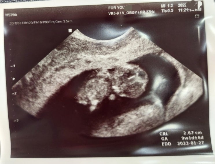 9주차에 질초음파로 확인한 아기는 활발했다. 탯줄도 보이고 3등신이지만 몸(?)을 뒤집기도 하고 주수에 맞...