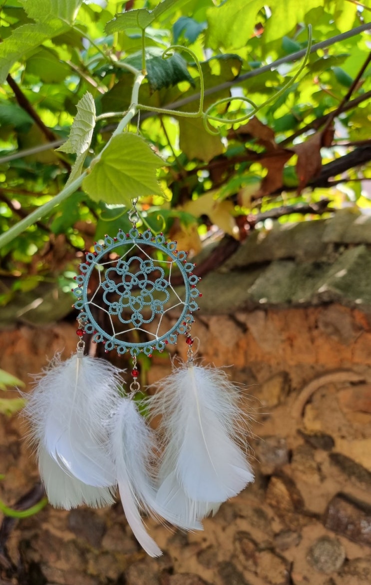 제가 좋아하는 컬러 중 하나에요 드림캐쳐의 실과 비즈의 컬러 조합으로 귀걸이를 만들어 제법 인기가 많았...