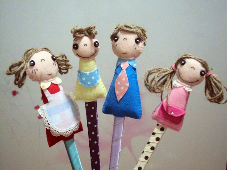 펠트로 만든 가족 막대 인형 - 유아 교구 만들기/만드는방법/핸드메이드