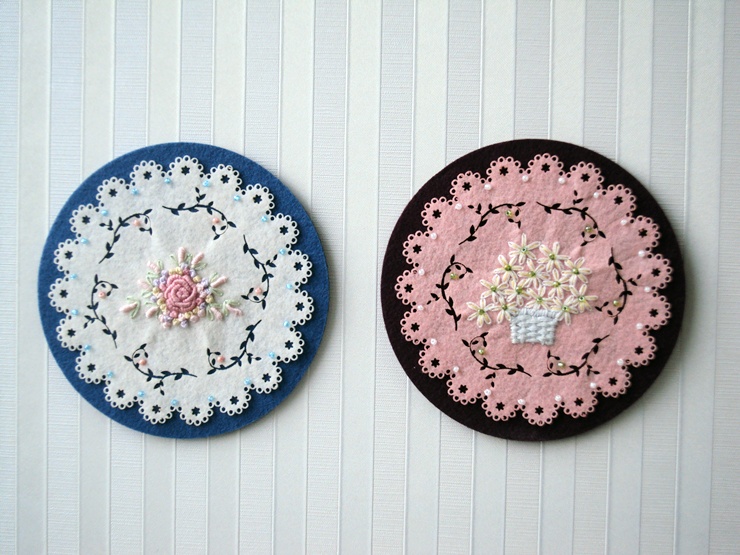 펠트와 꽃자수가 만났어요~ 벽걸이로 스리즈로 만들어 볼라구요~ 꽃자수는 처음 하는거라..많이 서툴러서 ...
