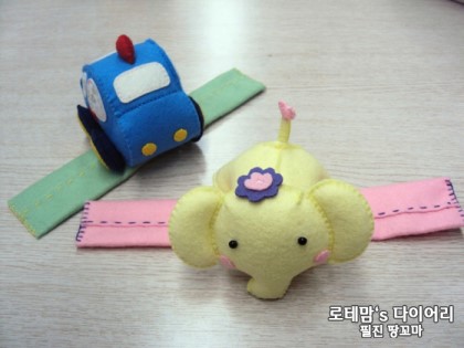 롯데백화점 공식 블로그 로테맘스 다이어리에 펠트로 제가 만든 아기 손목 딸랑이가 포스트 올라왔어요^^