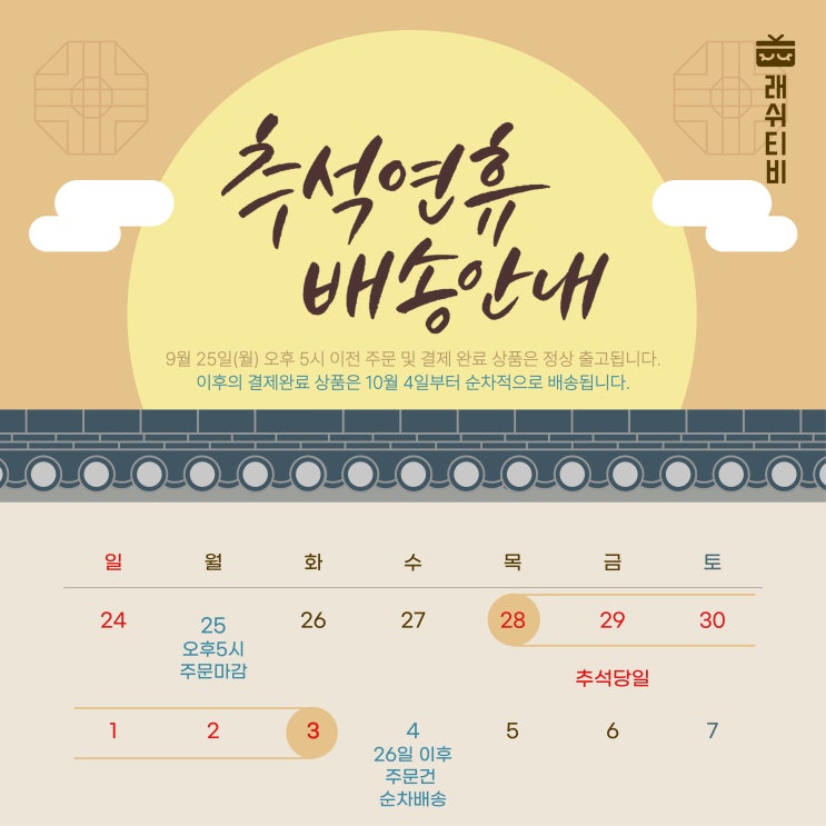 2023년 추석연휴 래쉬티비 배송안내