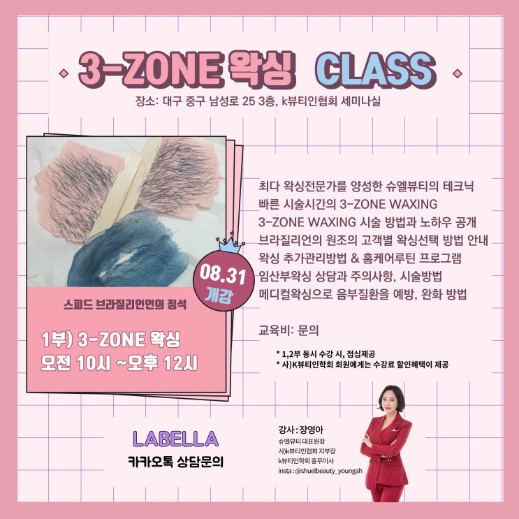 2021년 8월 31일 화요일 3zone 왁싱 + 물광 페이스왁싱 세미나가 진행됩니다 최다 왁싱 전문가를 양성한 슈...