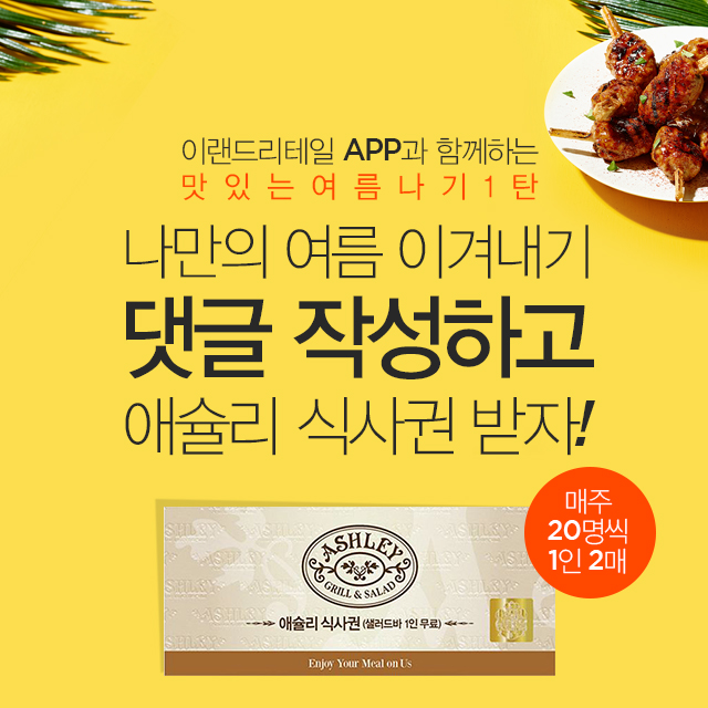 애슐리 식사권 이벤트 [EVENT] 이랜드리테일 APP 이벤트 여러분이 여름을 이겨내는 방법을 이랜드...