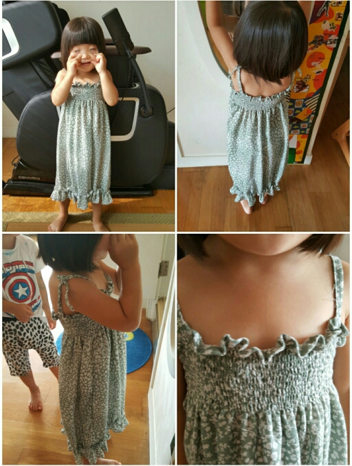 따님을 위한 고무줄짱짱 넣은 스모크드레스를 처음 만들었다. 고무줄 넣는 재봉법이라니 싱기빙기~~^^ 핑크...
