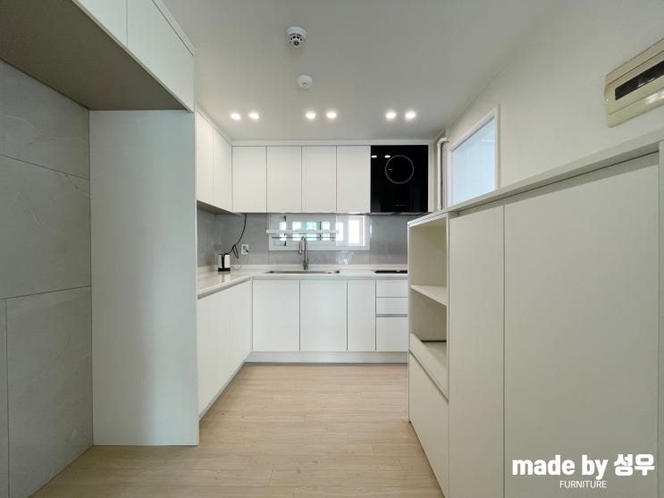 [인천씽크대공장]공간분리 현관가벽으로 ㄱ자주방 구조변경까지 얻은 용산 이촌코오롱 아파트(feat.한솔 크림화이트 싱크대)