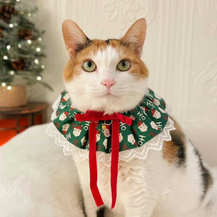 크리스마스 강아지 고양이 스카프 - 산타그린 Miyopet 미요펫