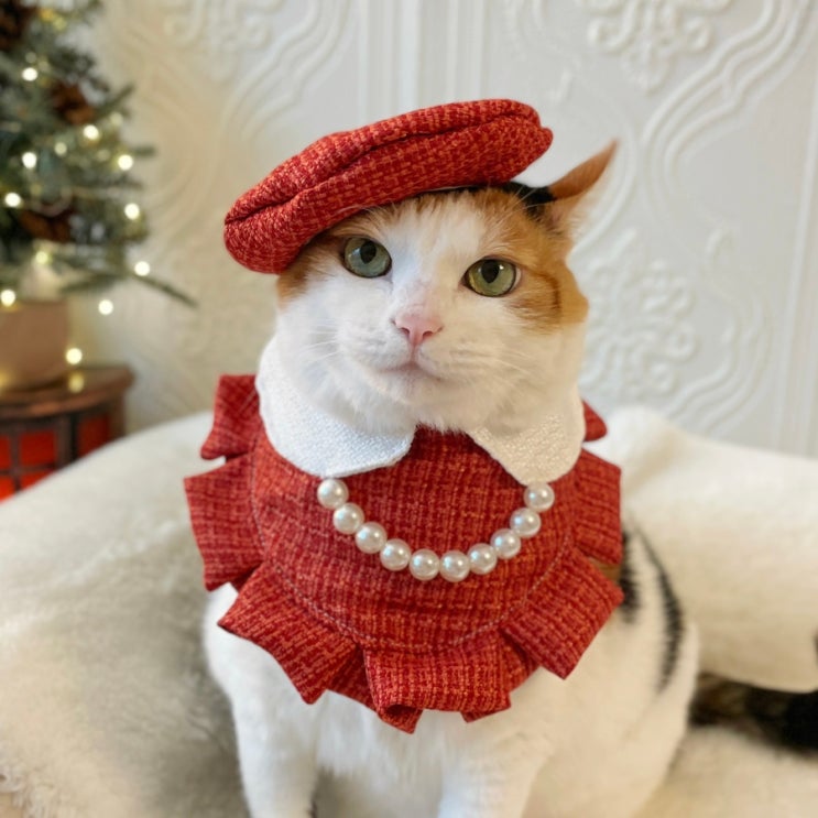 크리스마스 청담동 고양이 강아지룩 / Miyopet 레드 트위드 케이프