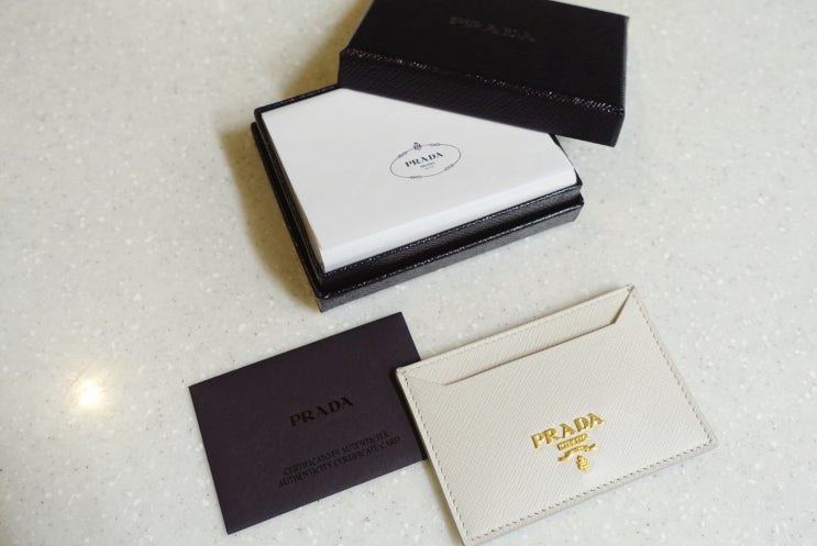인사 드릴 곳이 있어서 미리 구입해 둔 프라다 카드지갑 서로 모르는 사이라 똑같은 디자인으로 2개...