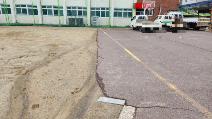 이번 현장은 #원화중학교 아스콘으로 포장되어 있는 농구장에 운동장모래가 유입 된다고 하여 단차를 위해 ...