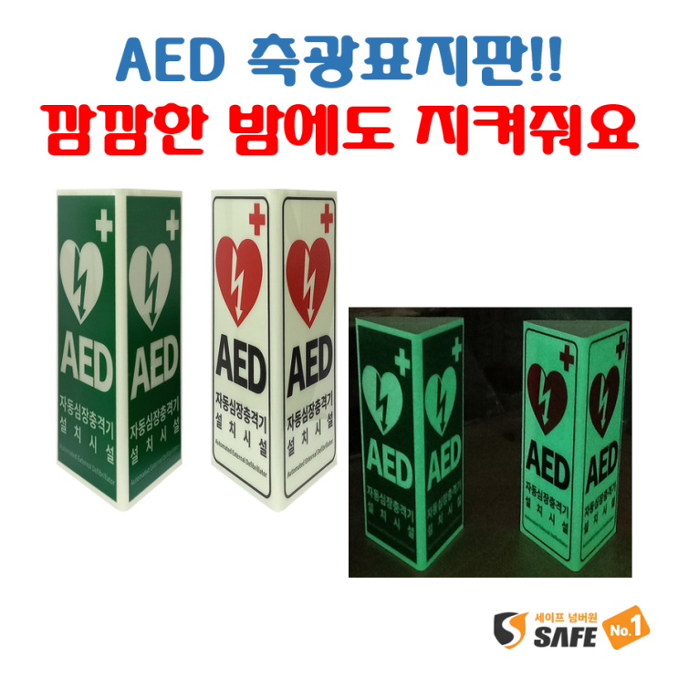 대호통상! 세이프넘버원 어두워도 보이는 AED 설치시설안내 표시판 / 자동 제세동기, 심장충격기 설치시설 표시 안내용