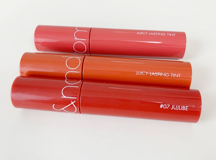 롬앤 쥬시래스팅 틴트 쥬쥬브 애플브라운 리치코랄 롬앤 제품이 생각보다 괜찮다는 이야기를 듣고 궁금해서...