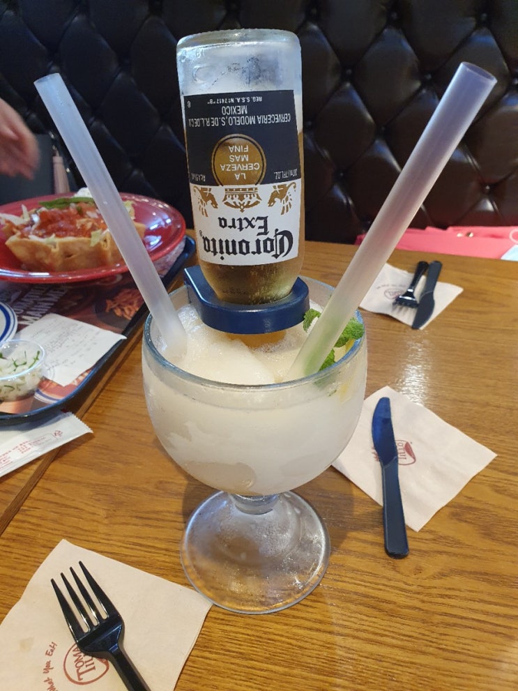 일단 코로나리타 한잔씩 시원하게 마시고 친구들과 함께 즐거운시간 ㅎ 퀘사디아 앤 칠리? 타코앤 칠리? 그...