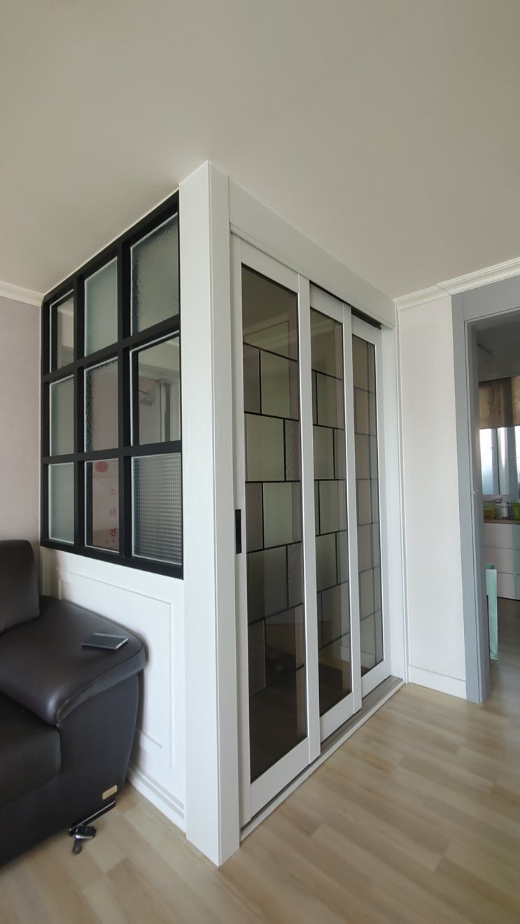 파티션 철거없이 3연동중문 설치로 완성된 아파트 현관 인테리어