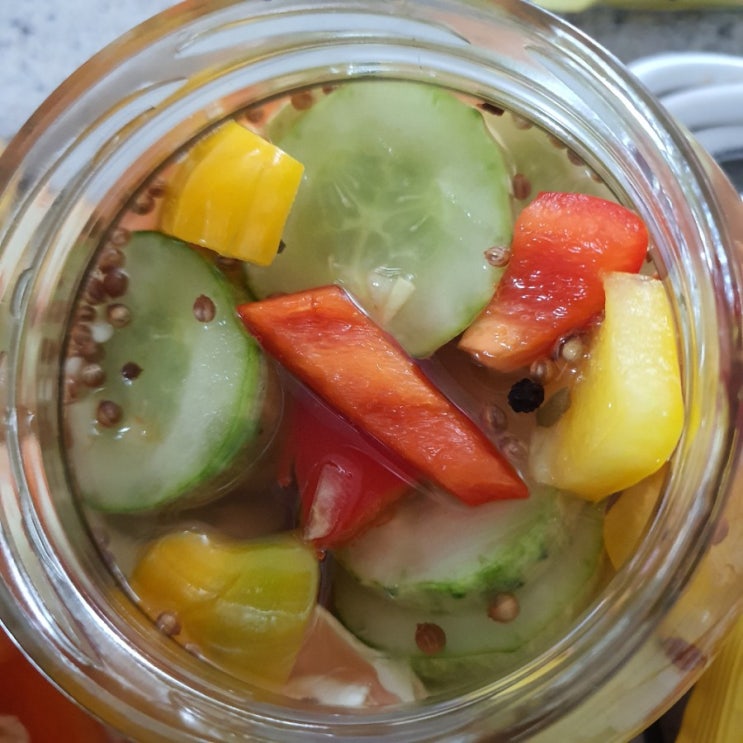 야채를 잘 안먹는 아기를 위해서 피클을 담기로 결심!! 싱싱한 아이들로 준비!! 오이랑 파프리카~ 당근은 ...