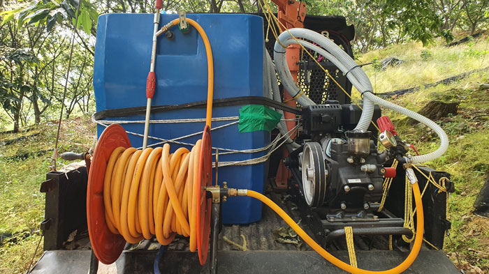 충전식 농약분무기 손잡이와 노즐 교체하기, 완두콩 옆에 지주대 세우기