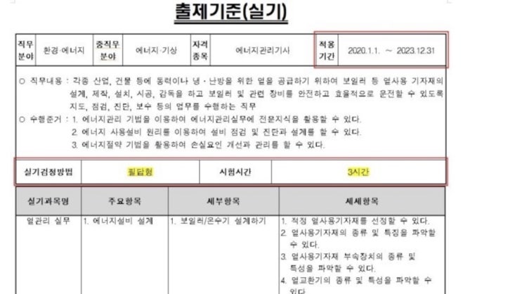 에너지관리기사 실기시험 정보 및 시험후기