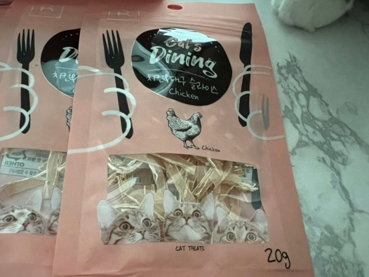 캣츠다이닝 치킨& 대구 슬라이스 20g 한 봉당 770원으로 할인 행사 중이어서 몇 봉 사 본 캣츠다이닝 ...