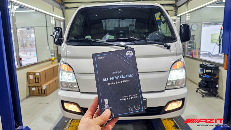 포터2 봉고3 에도 LED전조등 합법 장착이 가능합니다. 브라비오LED의 신제품 올뉴클래식 H7으로 답답했던 할로겐 전구 보다 더 밝고 더 멀리 보세요. 장착점 아지트.